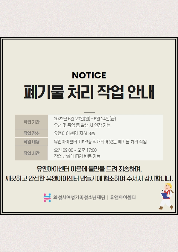 제목 [유앤아이센터] 폐기물 처리 작업 안내