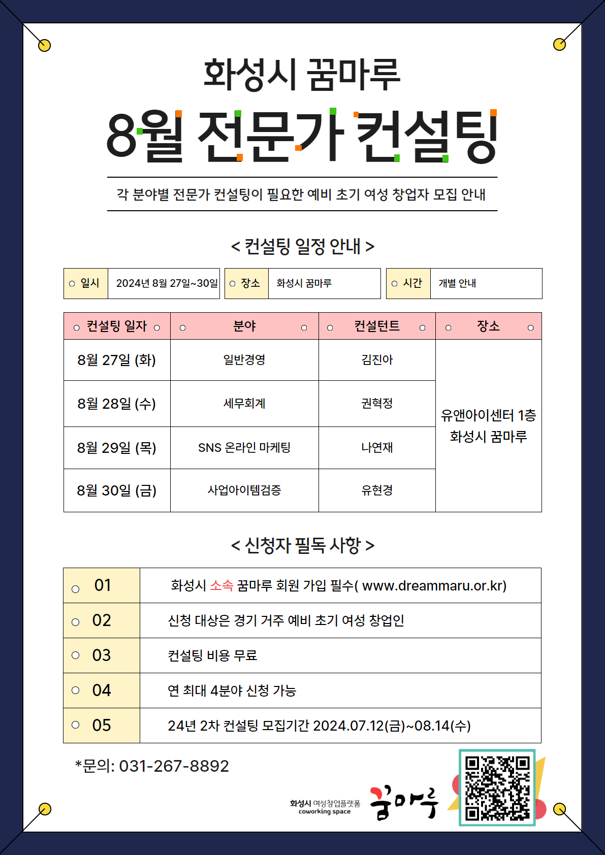 제목 [화성시 꿈마루] 8월 1:1 전문가컨설팅 신청 접수