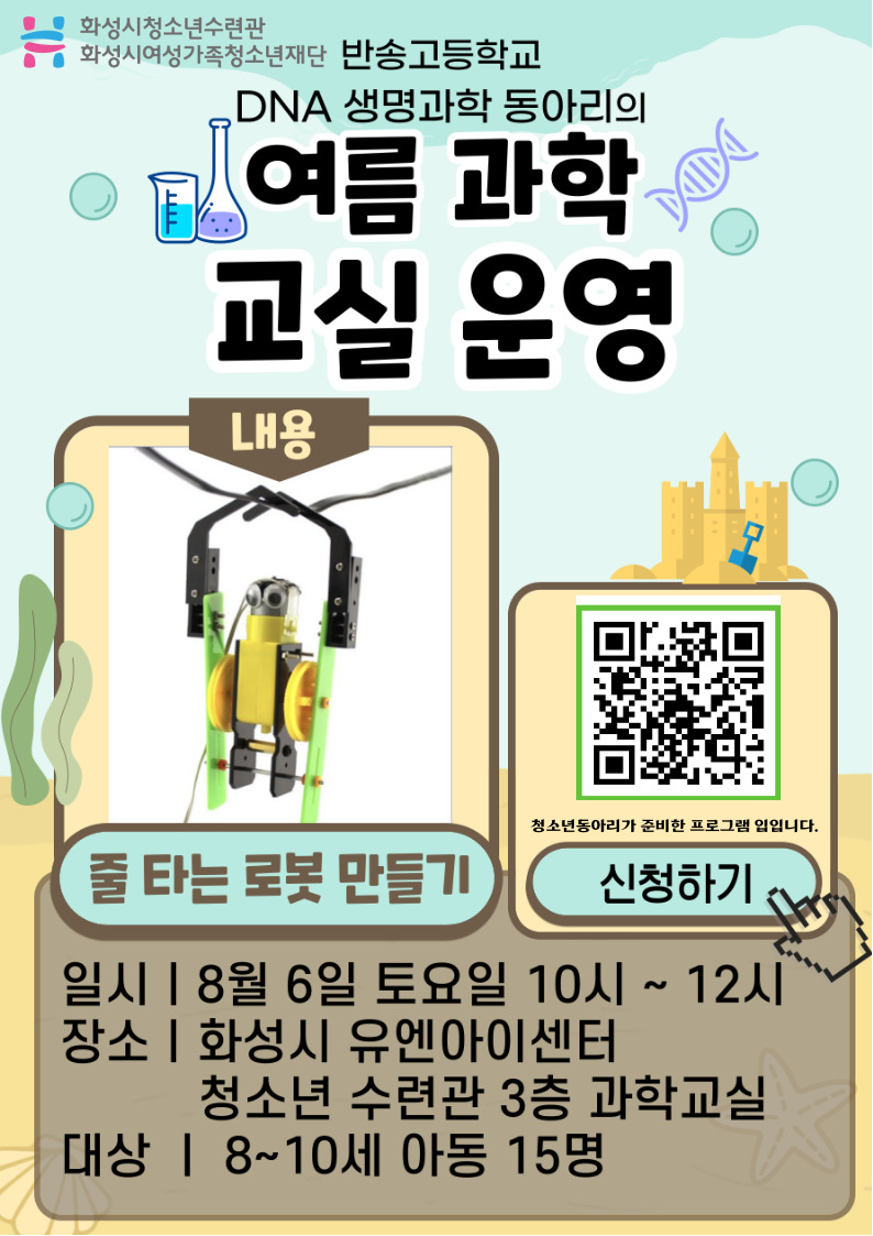제목 [화성시청소년수련관] 청소년동아리 'DNA' 여름과학교실 참가자 모집 (8 ~ 10세)
