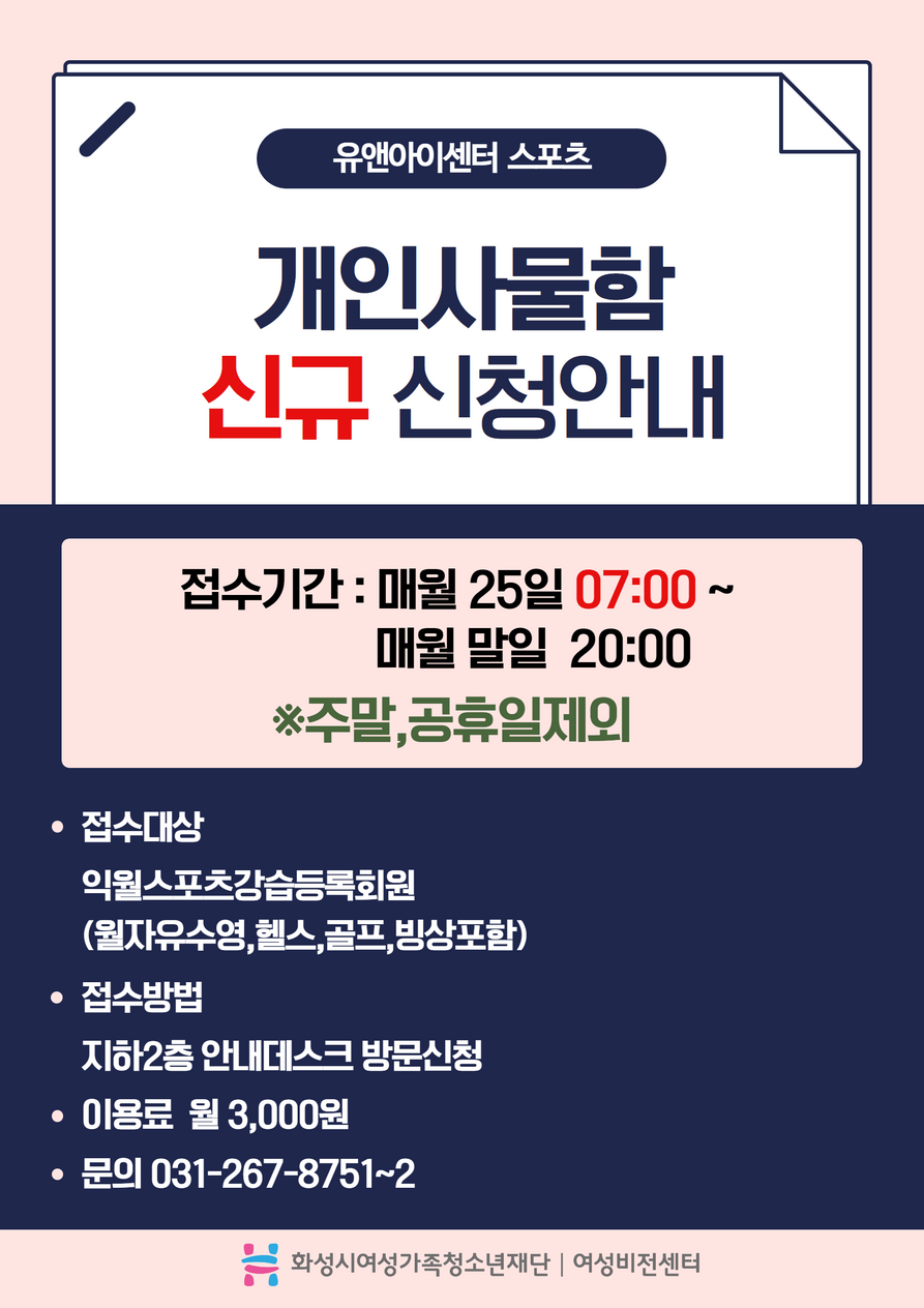 제목 유앤아이센터 스포츠프로그램 등록회원 개인사물함 신규신청안내