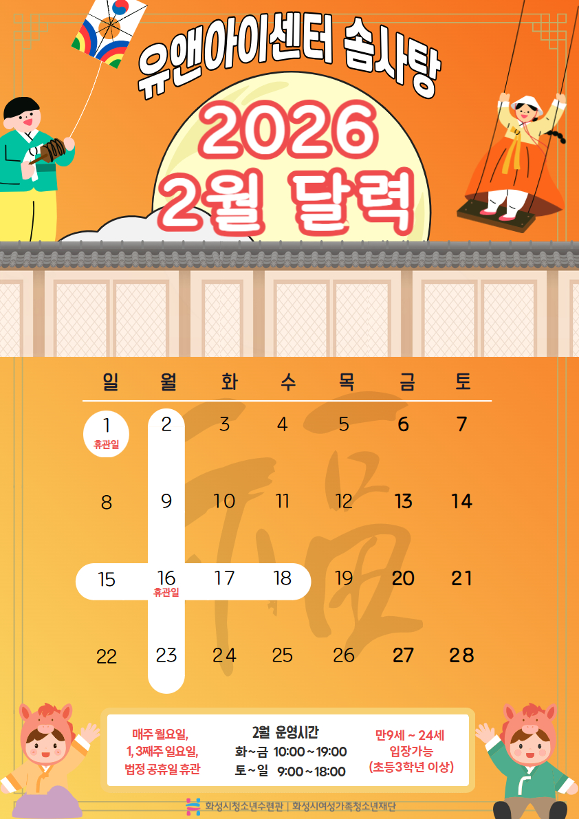 | 제목 | 유앤아이센터 3층 솜사탕 2월 운영일정 안내 | ||