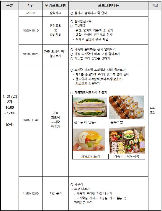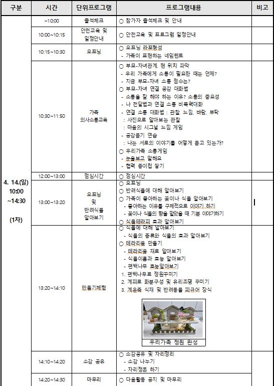 2024 우리가족소통데이 세부프로그램 [ 1일차-4월14일(일) 10:00~14:30 ]