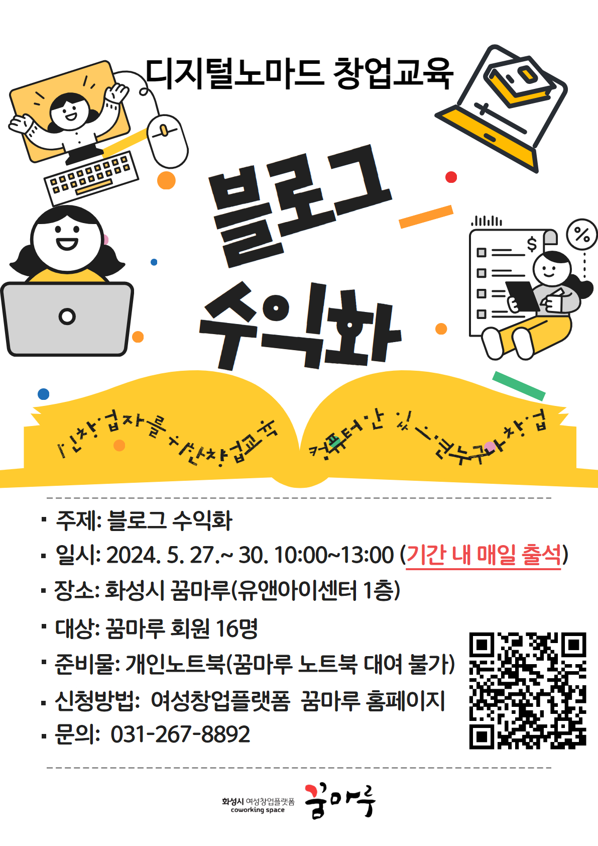 제목 [화성시 꿈마루] 디지털노마드 창업과정2탄 '블로그 수익화' 모집 안내