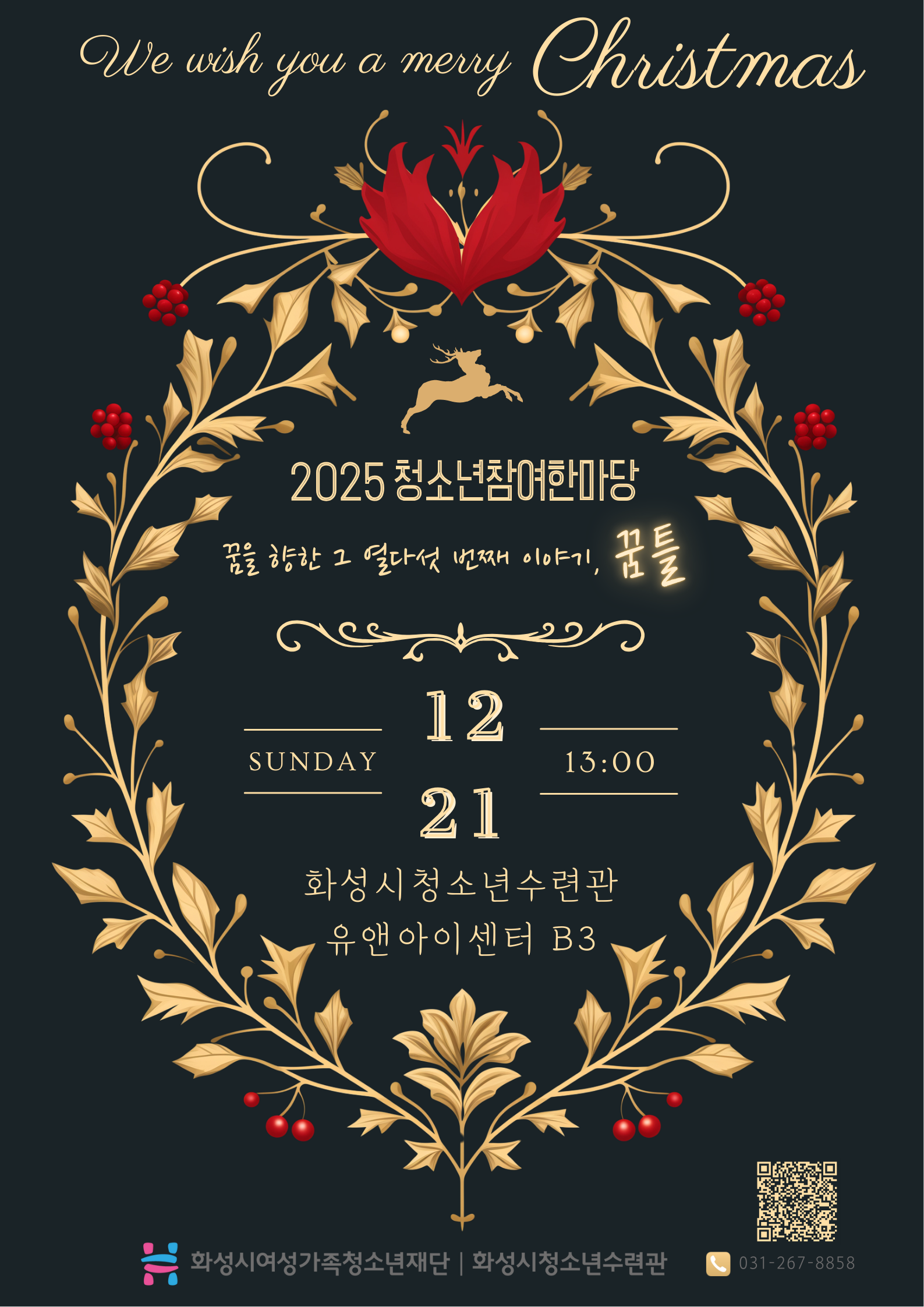 2025년 화성시청소년수련관 청소년참여한마당 꿈틀1221()에 열립니다.
