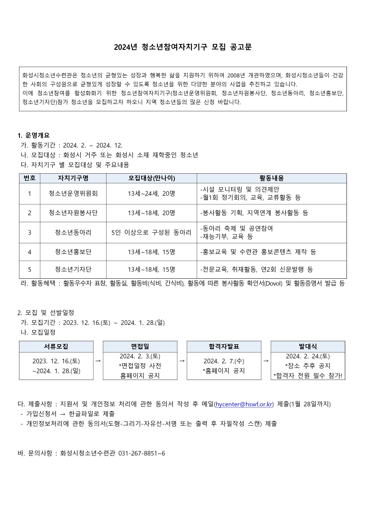 제목 [화성시청소년수련관] 2024년 청소년 동아리 모집★