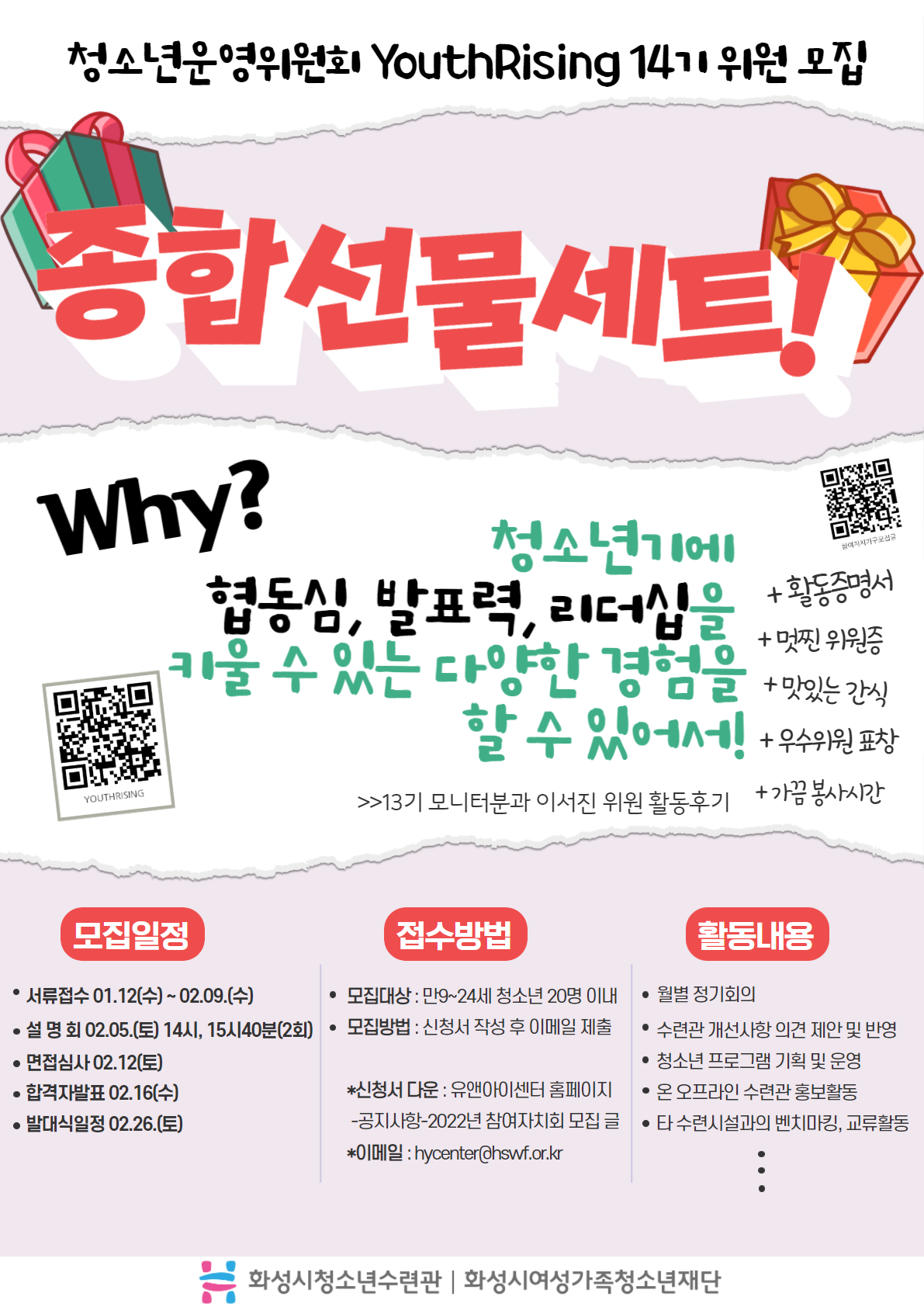 제목 [화성시청소년수련관] 청소년운영위원회 14기 위원 모집