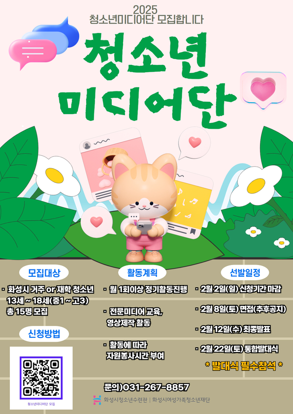 제목 [화성시청소년수련관]2025년 청소년미디어단 참여 청소년을 모집합니다!