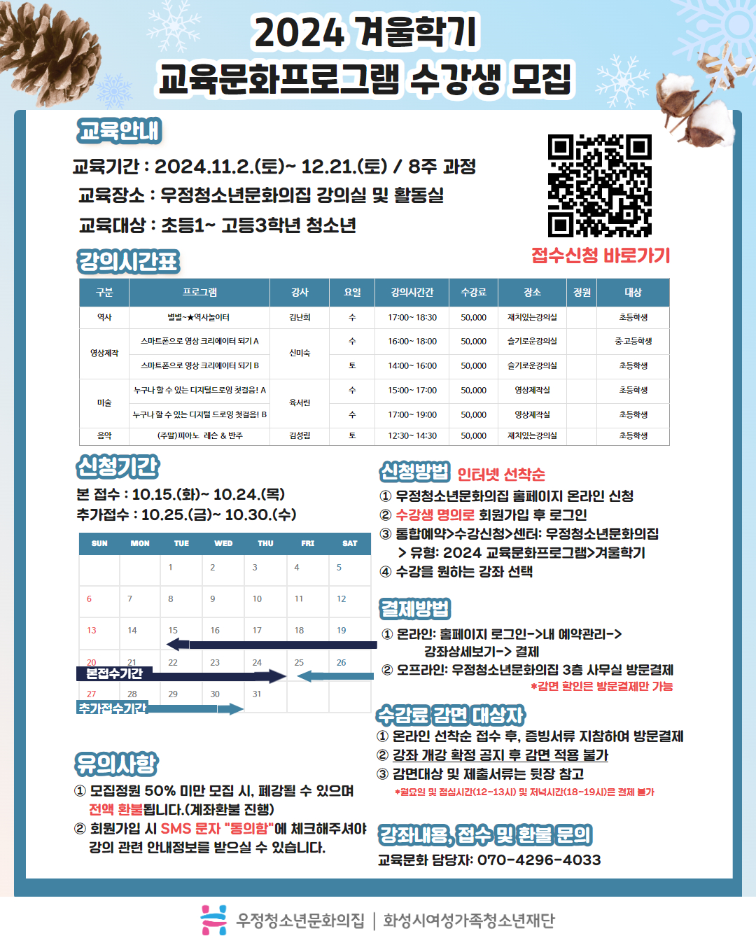 2024. 10. 30.(수) 20시까지 현장방문결제 가능합니다. 감면받으실 분들은 꼭! 인터넷에서 신청만하시고 현장결제해주시기 바랍니다. 온라인결제x