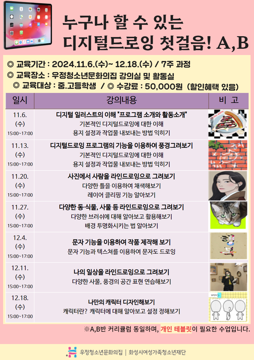 **강좌별 세부계획서가 있으니 확인부탁드리며, 기타 궁금한 사항은 070-4296-4033 로 전화주세요.**