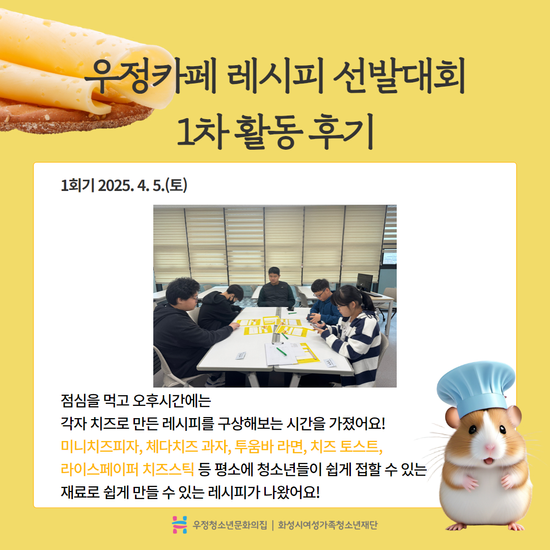 여러분 다들 치즈 좋아하시죠? 우정카페 레시피 선발대회 1차의 주제는 "치즈" 였어요!