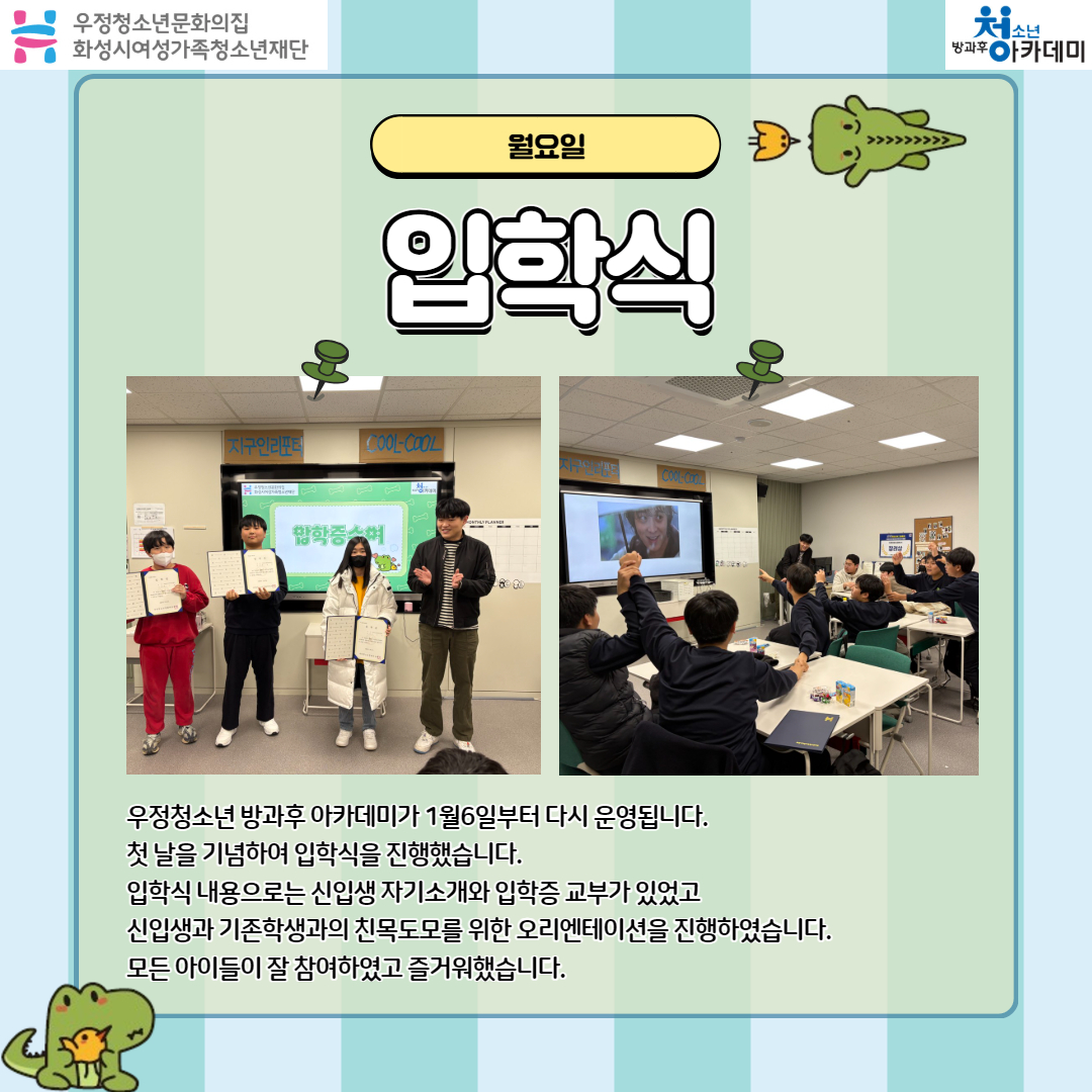 [우정청소년문화의집] 우정청소년방과후아카데미 주간우정여행(2025년 1월 둘째주)