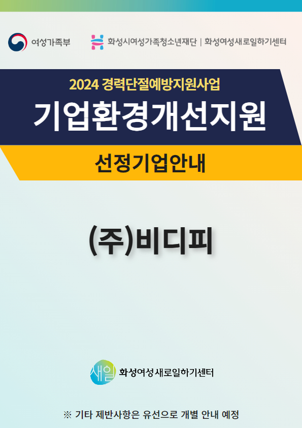 - 2024년 경력단절예방지원사업 기업환경개선지원 선정결과 안내 (추가선정)