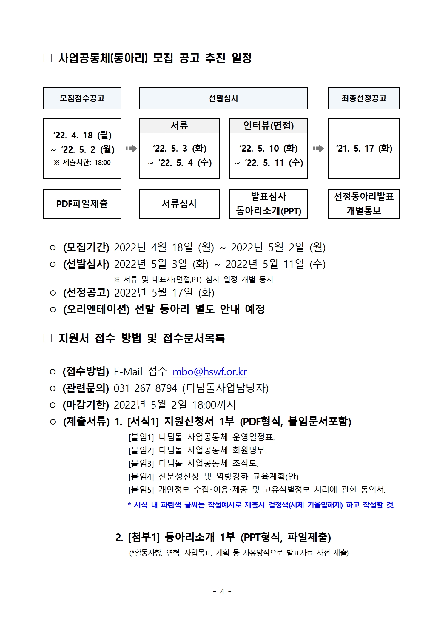 | 첨부 | 파일 아이콘2022년 디딤돌 사업공동체(동아리)신청서류.hwp (115.5KB)다운로드 아이콘 파일 아이콘2022년 디딤돌 사업공동체(동아리)추가모집계획(3차).pdf (875.98KB)다운로드 아이콘 | ||