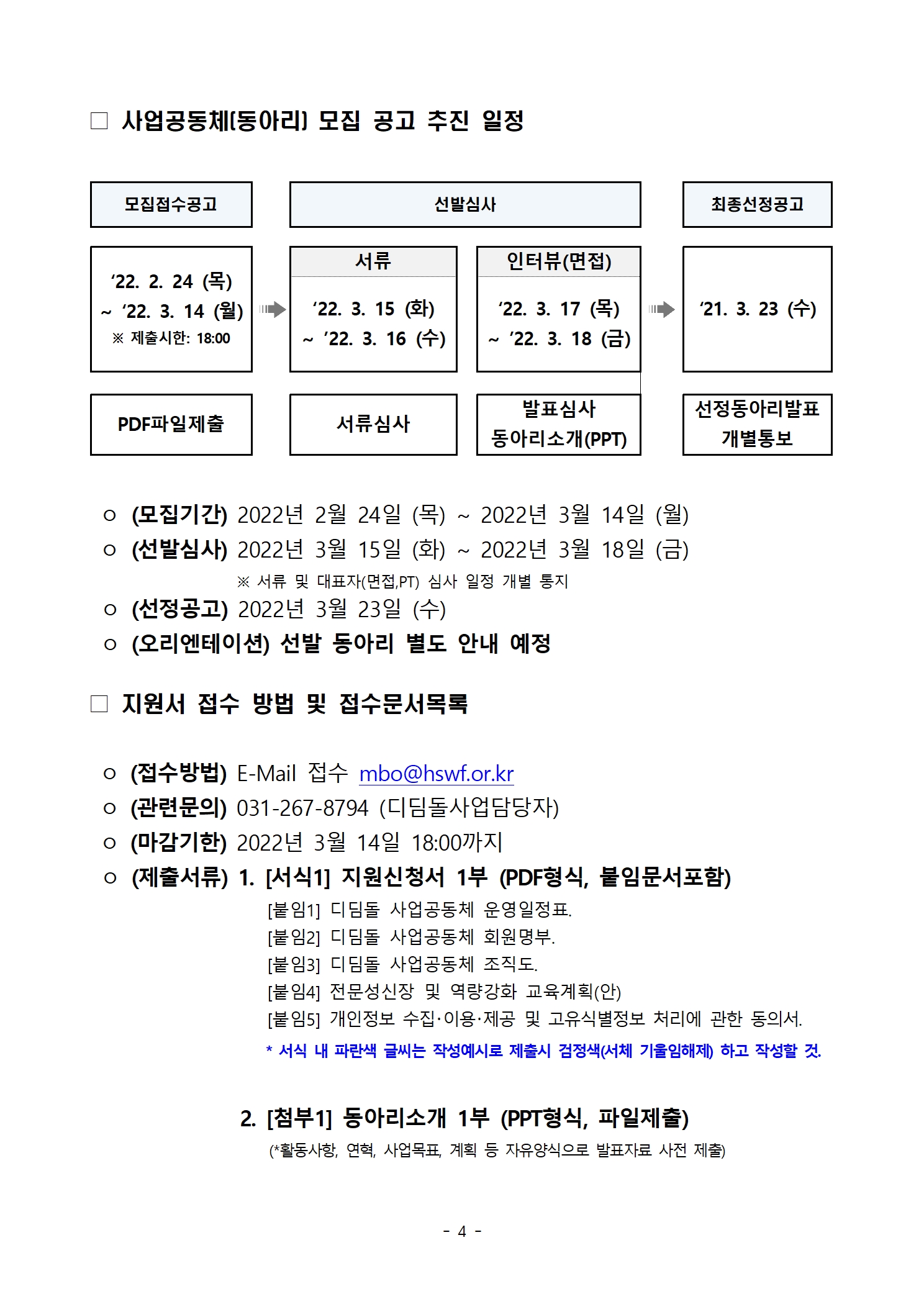 | 첨부 | 파일 아이콘2022년 디딤돌 사업공동체(동아리)추가모집공고(2차).pdf (181.91KB)다운로드 아이콘 파일 아이콘2022년 디딤돌 사업공동체(동아리)신청서류.hwp (115.5KB)다운로드 아이콘 | ||