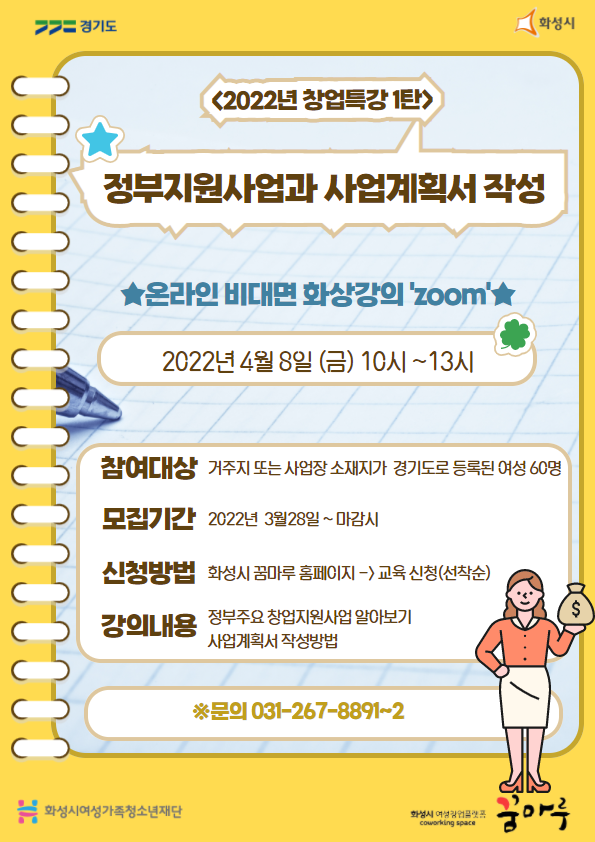 제목 [꿈마루] 2022년 창업특강 1탄 "정부지원 사업과 사업계획서 작성" 운영센터 화성여성새로일하기센터 작성일 2022년 3월 14일 16시 16분 조회수 1,169 ? 목록보기