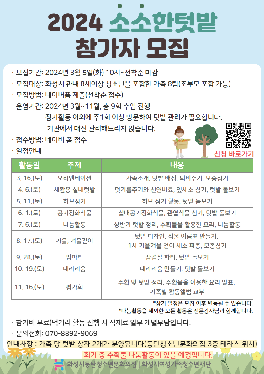 제목 공지 [모집] 2024 소소한텃밭 참가 가족 모집!