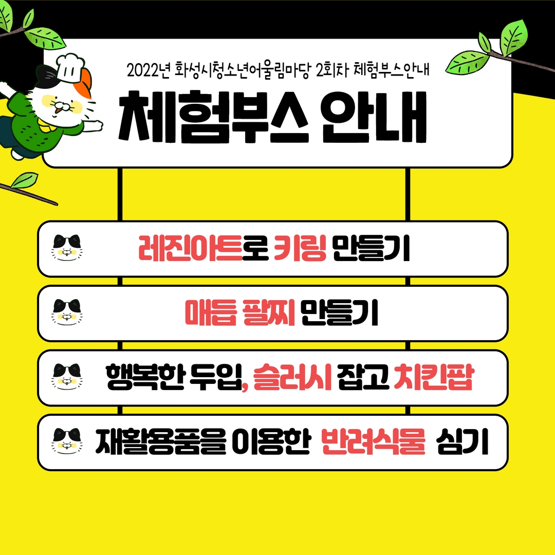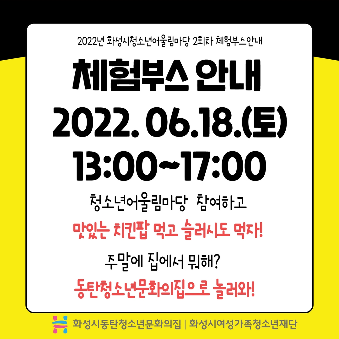 | 제목 | [2회차 화성시청소년어울림마당] 체험부스 안내 | ||