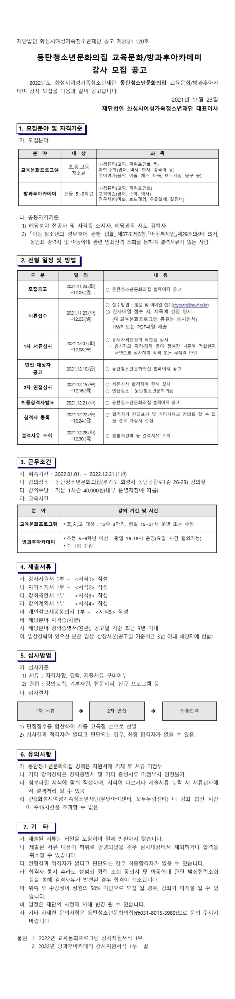 | 제목 | 2022년 동탄청소년문화의집 청소년 교육문화/방과후아카데미 강사 모집 공고 | ||