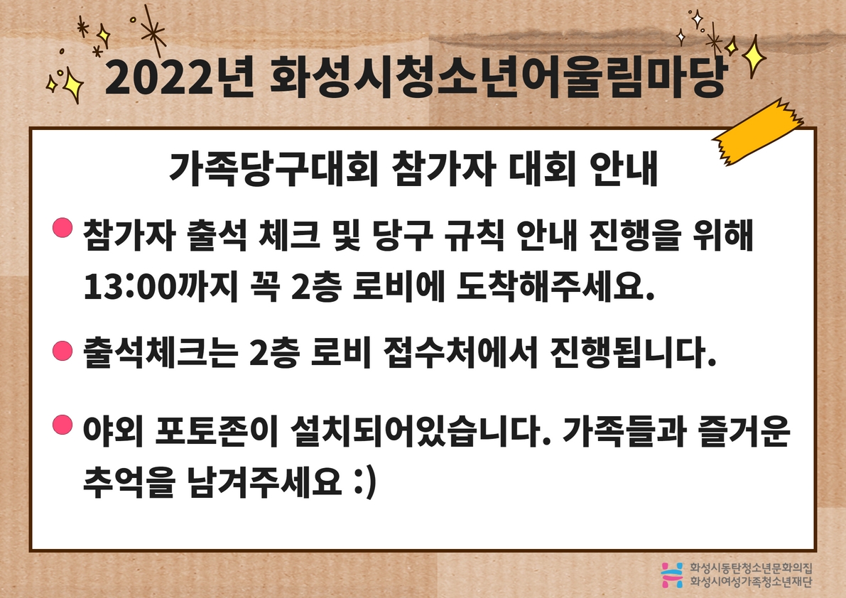 | 제목 | 화성시청소년어울림마당 가족당구대회 안내 | ||