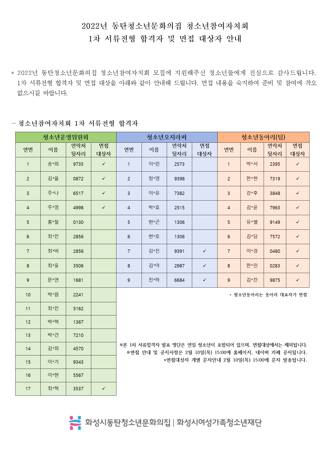 | 첨부 | 파일 아이콘2022년 동탄청소년문화의집 청소년참여자치회 1차 서류전형 -수정본001.png (180.33KB)다운로드 아이콘 | ||