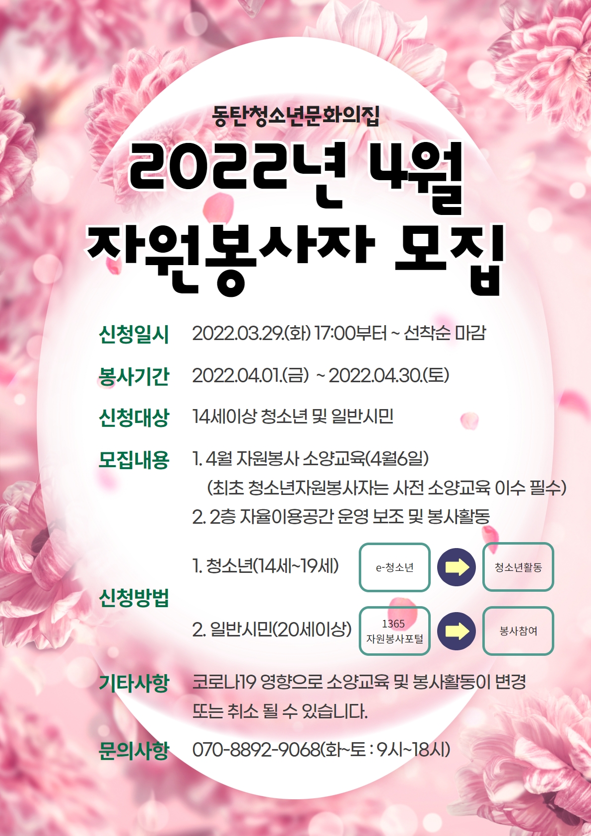 제목 2022년 4월 자원봉사자 모집 작성일 2022년 4월 1일 14시 45분 조회수 448 첨부 파일 아이콘4월 자원봉사자 모집.jpg (942.23KB)다운로드 아이콘 목록보기