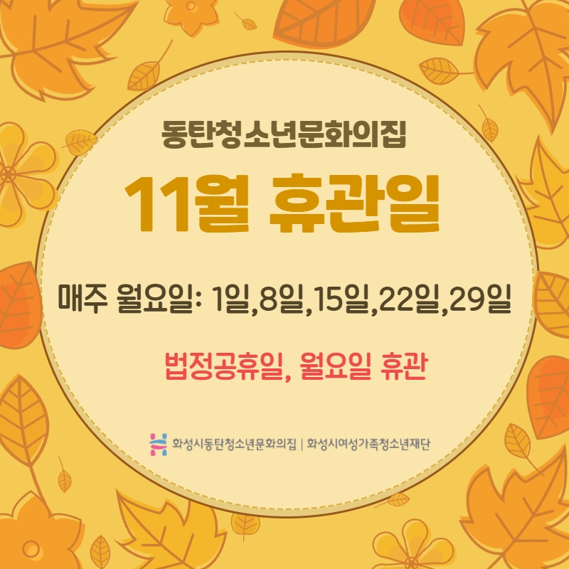 제목 11월 휴관일 작성일 2021년 11월 19일 9시 48분 조회수 319 첨부 파일 아이콘[복사본] 메인팝업존 pc(335_338) (4).jpg (261.21KB)다운로드 아이콘 ? 목록보기