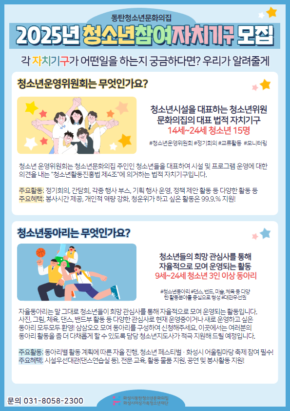 | 제목 | [동탄청소년문화의집] 2025년 청소년참여자치기구 모집(청소년이라면 누구나!) | ||