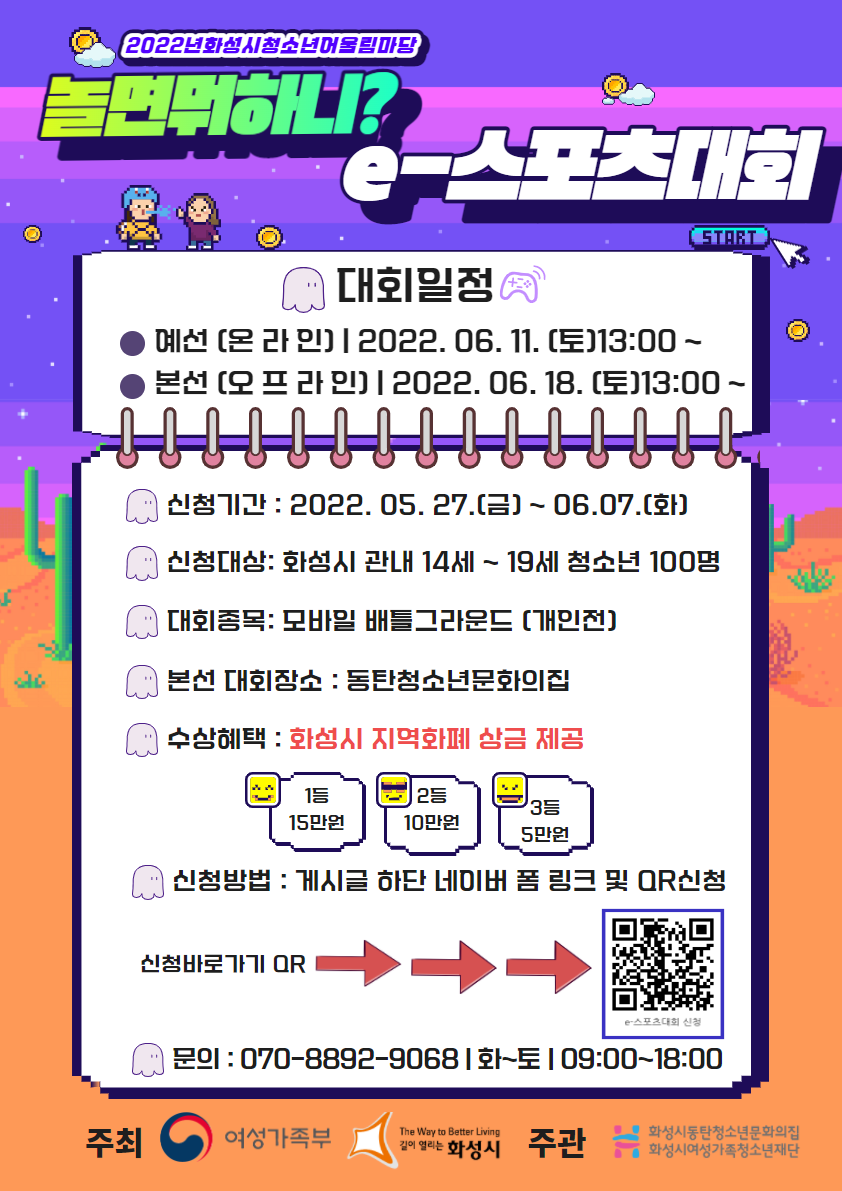 제목 2022년 화성시 청소년어울림마당 e-스포츠대회 참가신청 작성일 2022년 6월 2일 9시 54분 조회수 429 첨부 파일 아이콘1.png (204.92KB)다운로드 아이콘 ? 목록보기
