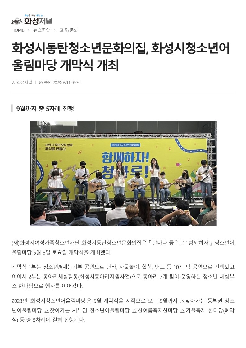 화성시동탄청소년문화의집, 화성시청소년어울림마당 개막식 개최(2023.05.11.)