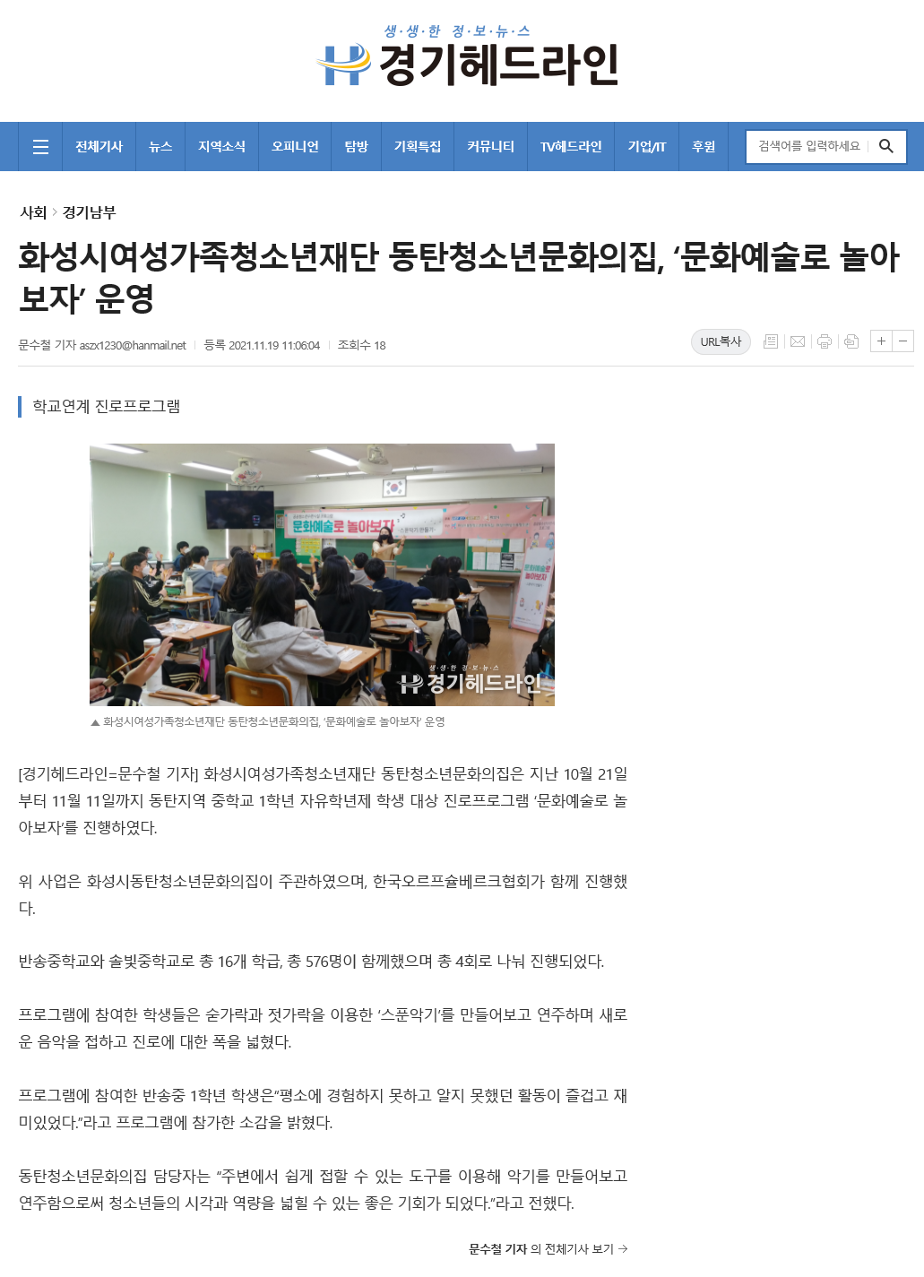 동탄청소년문화의집, 학교연계 진로프로그램 ‘문화예술로 놀아보자’ 운영(2021.11.19.) 재단에 바랍니다 상세 운영센터 동탄청소년문화의집 등록일 2021년 11월 23일 13시 41분 조회수 527 [언론보도처] https://www.hswf.or.kr/fmcs/480?action=read&action-value=75feff901e0fb1a66997972648828d9c 파일 아이콘문화예술로 놀아보자.png (420.96KB)다운로드 아이콘 목록보기