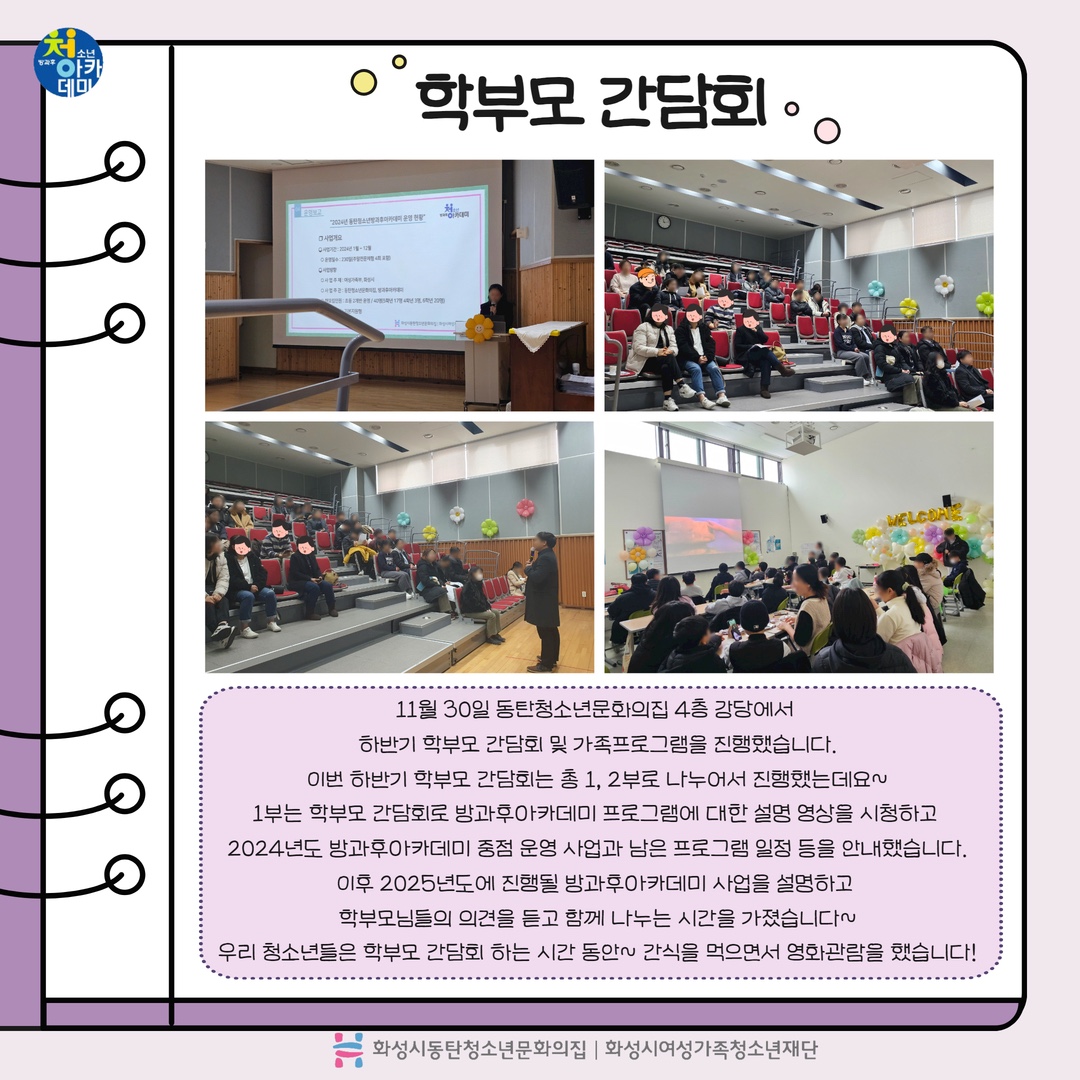 2024년 동탄청소년방과후아카데미 하반기 학부모 간담회 및 가족 프로그램