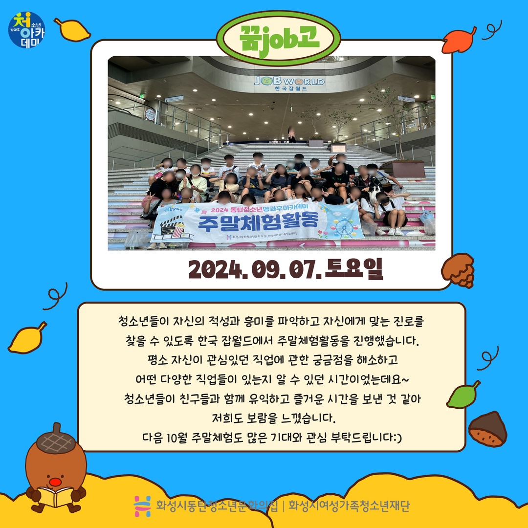 동탄청소년방과후아카데미 2024년 9월 주말체험활동_꿈job고 in 한국 잡월드