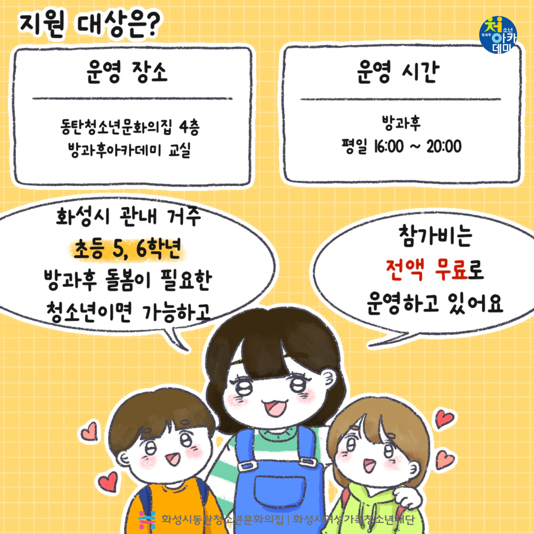 2024년 동탄방과후아카데미 신규 청소년 모집_인스타툰