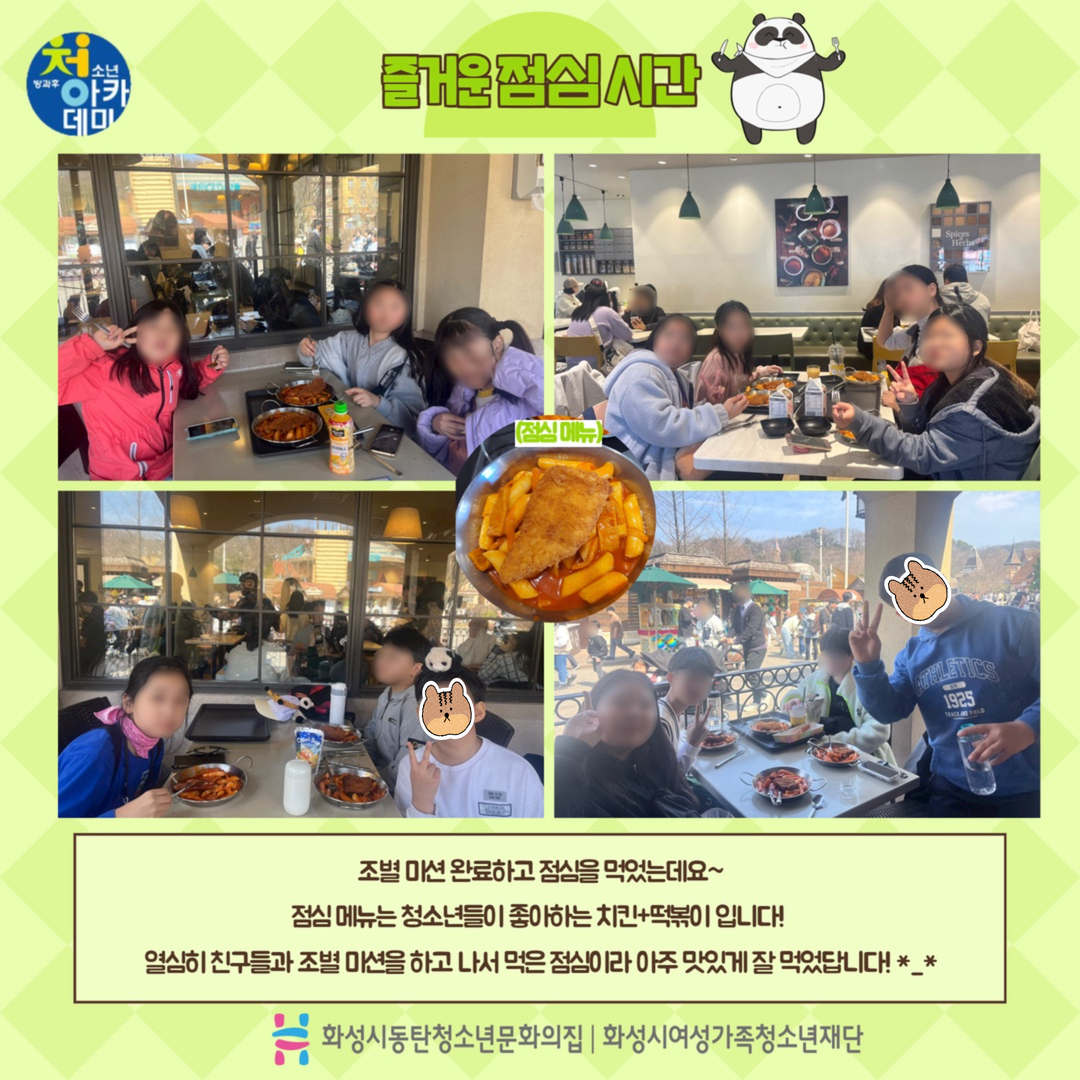 미션 수행이 끝나고 음식점에 가서 맛있는 점심 식사를 하고 자유시간을 가졌답니다!*_*