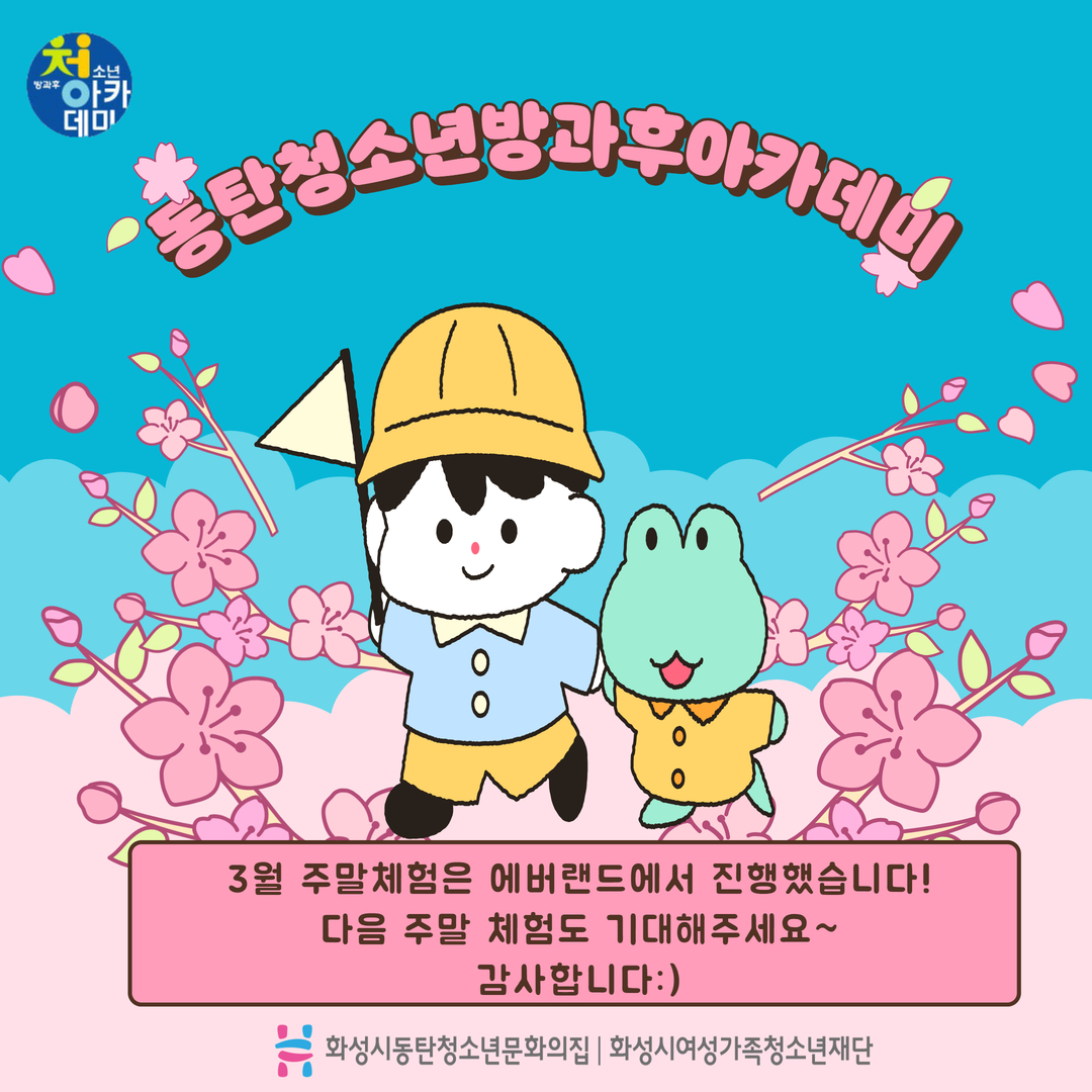 3월 23일 토요일 에버랜드에서 3월 주말 체험활동을 진행했습니다~