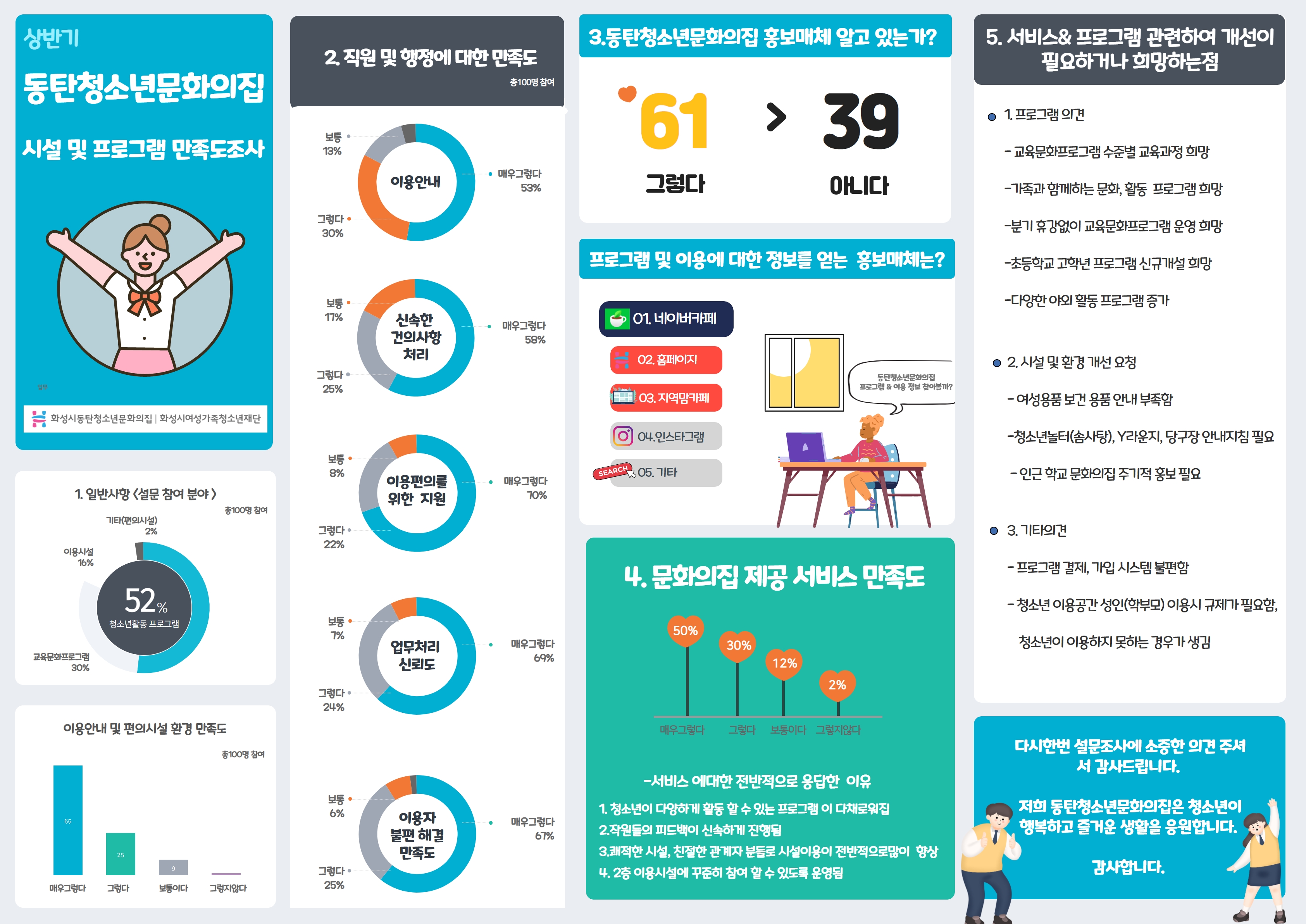 추후 결과를 토대로 건의사항을 개선하고, 보완하여 방문하는 청소년과 이용객 모두가 즐거운